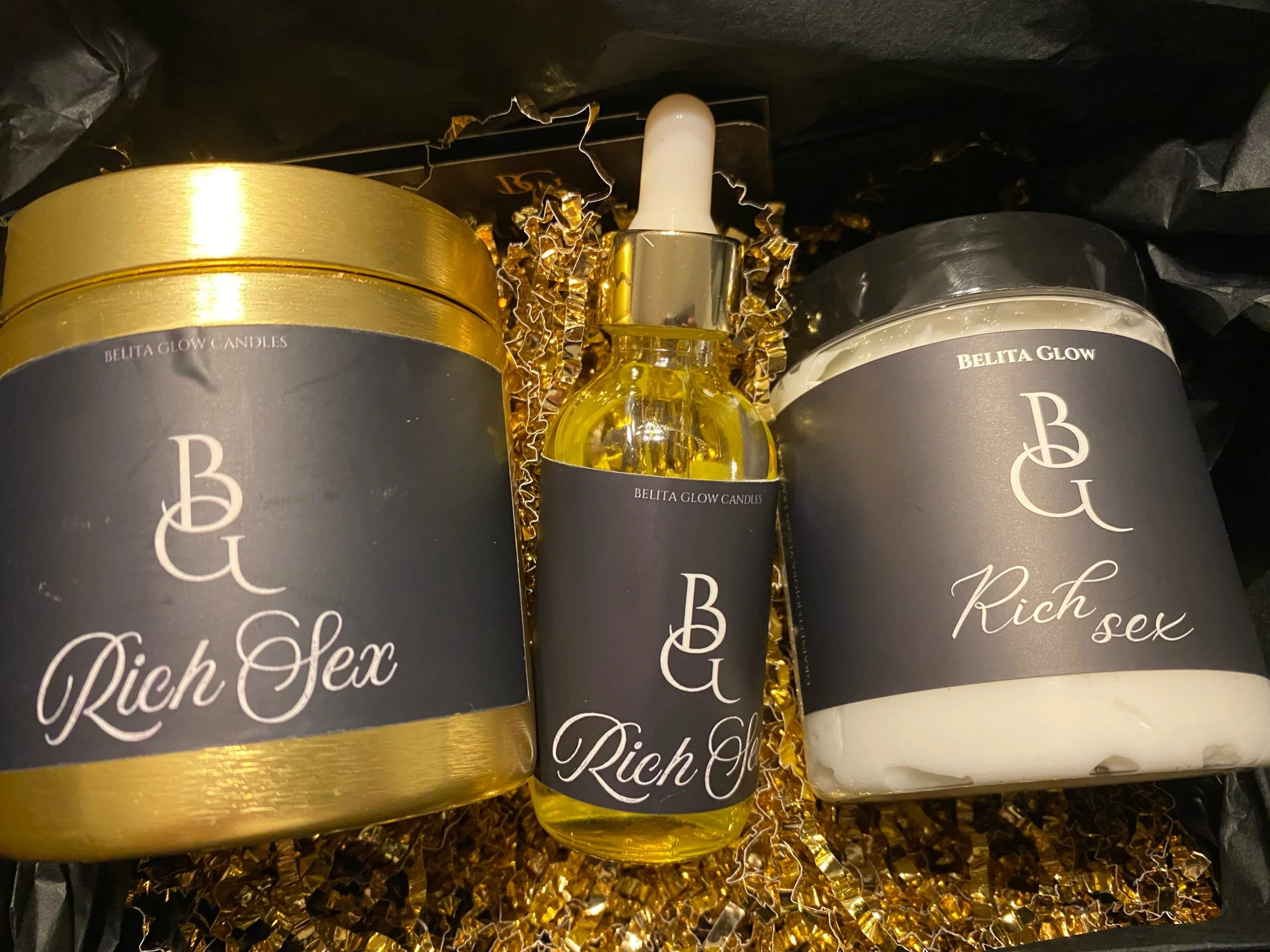 Gift Sets › Rich Sex Box Image 1 of 1 Rich Sex Box Sale Price: $50.00 Original Price: $86.00 sold out Box includes: Rich sex oil, rich sex creme, and rich sex 9oz candle Get notified by email when this product is in stock. Sold Out Added! Box includes: Rich sex oil, rich sex creme, and rich sex 9oz candle Reviews Reviewer Name Review Date Star Rating Description Posted on Etsy Product Show More