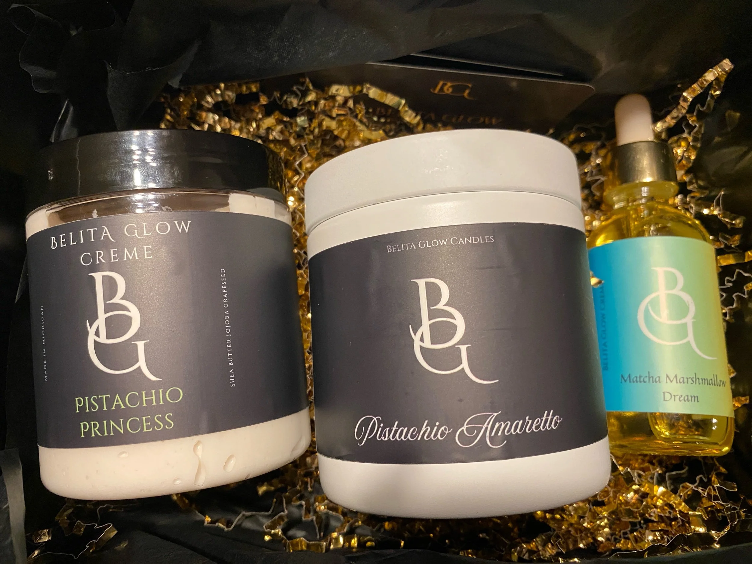Gift Sets › Pistachio & Matcha Marshmallow box oil Image 1 of 1 Pistachio & Matcha Marshmallow box oil Sale Price: $40.00 Original Price: $55.00 Pistachio amaretto candlePistachio body cremeMatcha marshmallow oil Get notified by email when this product is in stock. Add To Cart Added! Pistachio amaretto candlePistachio body cremeMatcha marshmallow oil Reviews Reviewer Name Review Date Star Rating Description Posted on Etsy Product Show More