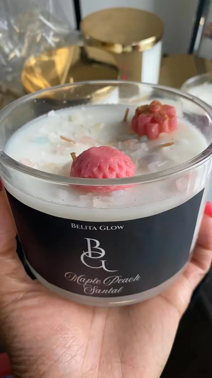 Belita Glow vegan soy candles, crafted with care from high-quality ingredients and fragrance oils. Unlike paraffin candles, our soy-based formula burns cleaner and longer, providing you with an extended burn time that enhances your favorite spaces without the toxins.